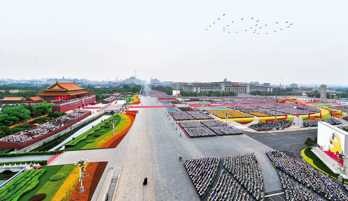 7月1日上午,庆祝中国共产党成立100周年大会在北京天安门广场隆重举行。 新华社记者 李贺/摄