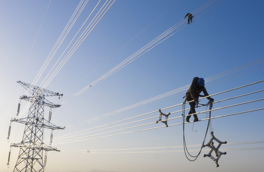 宁夏吴忠:“电力蜘蛛人”高空作业忙