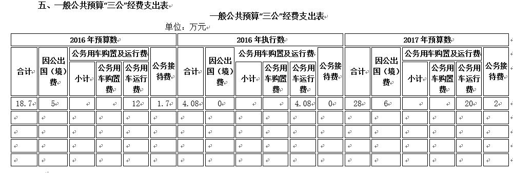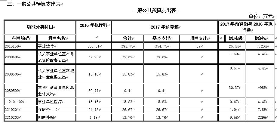 2017年,事业单位的机关运行经费财政拨款预算 10.27 万元,比2016年预算增加0 万元。实际执行为10.63万元,增加3.5%。