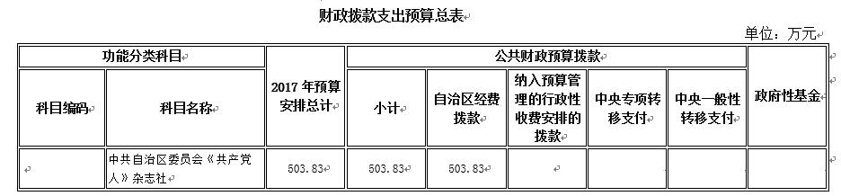 宁夏回族自治区《共产党人》杂志社2017年部门预算