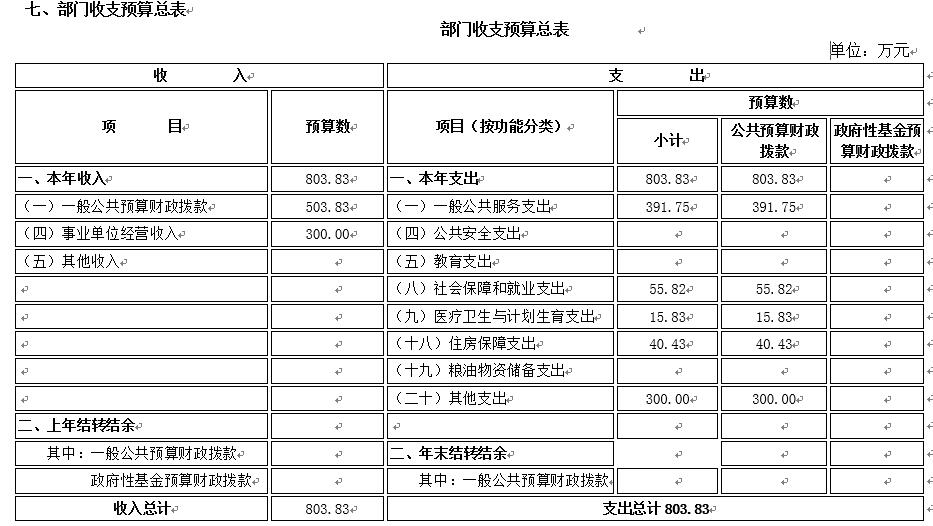 七、部门收支总表