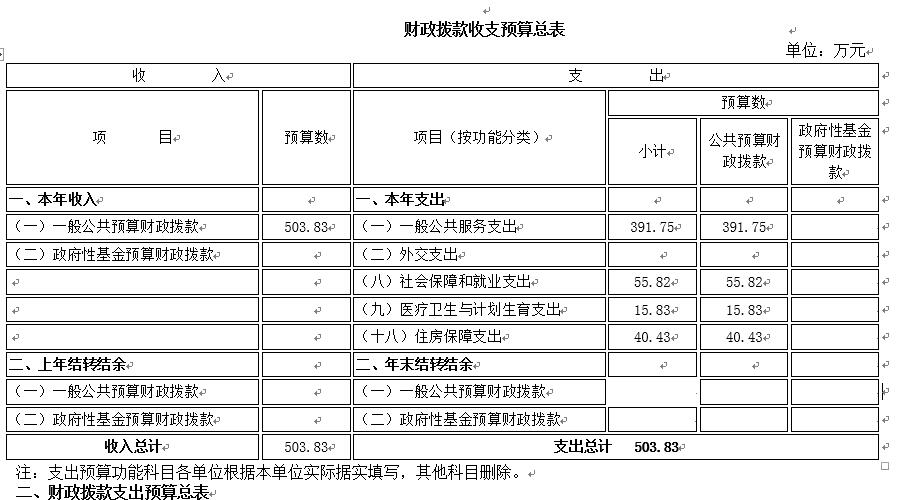 一、财政拨款收支总表