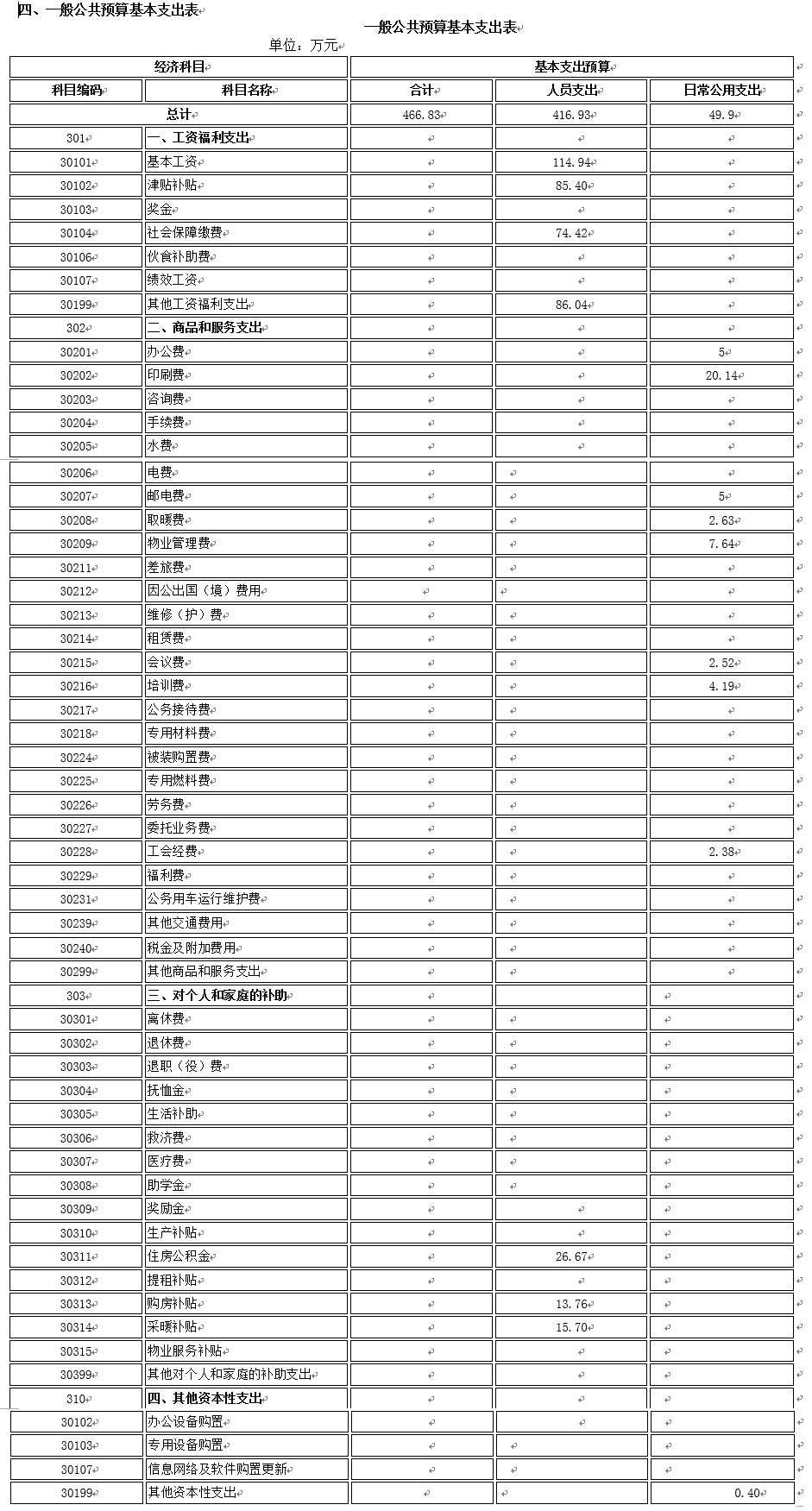 四、一般公共预算基本支出表