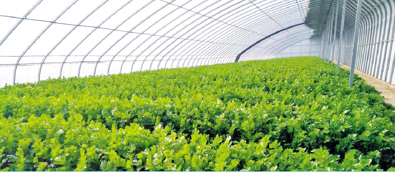 郝家桥泾灵北村温室大棚芹菜长势喜人