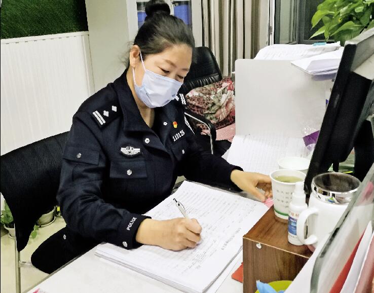 “当了社区民警,我就想着要和居民拉近距离才能更好地开展工作,没事我就学各种方言,陕北话、河南话我都学过。之前有个小伙子来办事,一口河南话,一着急更说不明白,我赶紧用河南话和他聊,他立马就放松了,很快就帮他把要办的事办好了。这次疫情来势猛,我常向老吴请教,我们两个有点时间就交流一下工作经验,老吴管的辖区比我大好几倍,我都苦成这样,可想而知他有多苦。他从来不给我喊苦喊累。有一天视频,他说‘老婆,给你看个好东西’。他把脚抬起来,只见他的袜子磨了两个大洞,没了后跟。我说,‘你看看你个大所长,丢不丢人,穿个破袜子到处跑。’嘴上这么说,其实挺心疼的,可见他一天得走多少路!