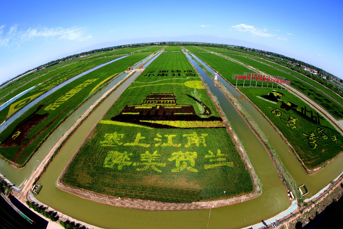 如今,站在稻渔空间观光塔放眼望去,绿油油的稻田里,由彩稻拼成的各种图案、标语一下子就映入我们的眼帘。“永远跟党走”“全面建成小康社会”“建设美丽新宁夏,共圆伟大中国梦”,这是书写在田间、铭记在心里的誓言;“百善孝为先”“哪吒闹海”等,把中华优秀传统文化符号绘就成铺展在稻田里的五彩图案。令人惊叹的还有休闲木屋、垂钓餐饮、儿童乐园、稻田玻璃栈桥、采摘园区以及鱼、蟹、鸭与水稻共融共生的良性循环生态区……靠勤劳双手、靠科技智慧、靠苦干实干,这里已然成为集现代农业和乡村生态休闲旅游观光为一体的乡间乐园。
