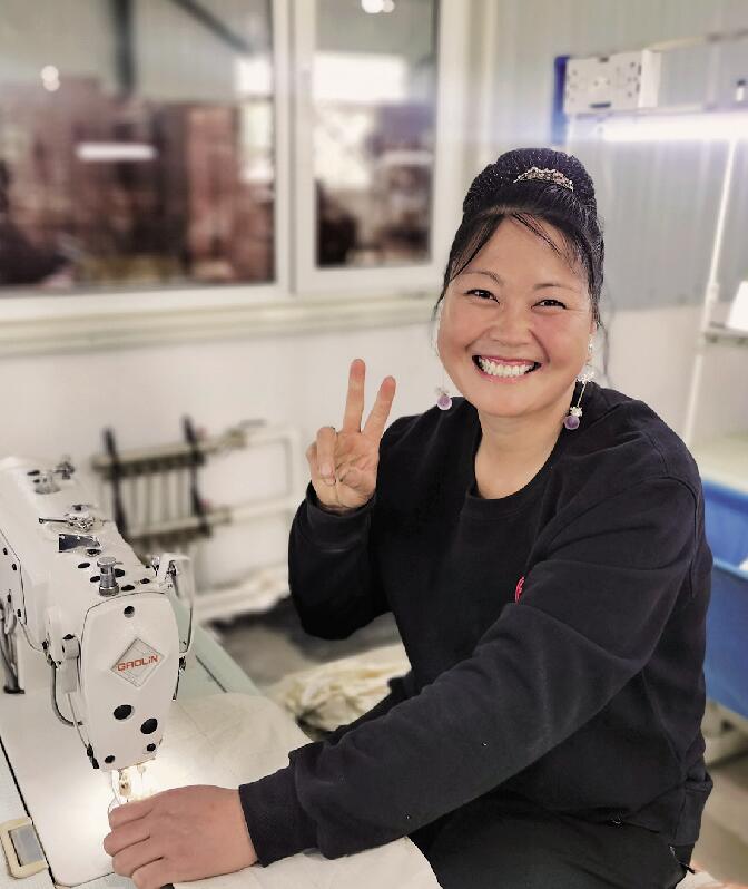 见到康芳时,她正在缝纫机前忙碌着,身边已经码起了半米多高缝制好的艾灸袋。看着她娴熟的动作,很能想象她是一个进厂还不到3个月的工人。“虽然以前没有用过缝纫机,但是一进厂负责人就对我们进行了手把手的培训,很快我就上手了。”对自己如今的手艺,康芳语气中充满了自信和骄傲。