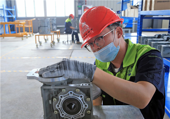 8月17日,宁夏潞碧垦自动化灌溉设备有限公司员工正在加工设备。该公司水利测控一体化闸门制造和检测中心项目总投资1.5亿元,全部建成后,可实现年产值18亿元。 谷刚 摄