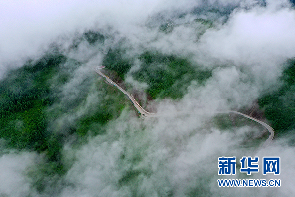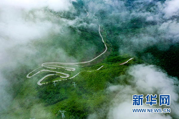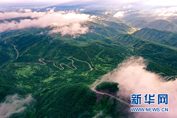 连接宁夏固原市泾源县和隆德县的泾隆公路,蜿蜒穿越巍巍六盘山脉,两侧风景秀丽。雨后航拍泾隆公路景色,层层山峦云雾萦绕,山间公路若隐若现,线条优美,宛如仙路。新华网发