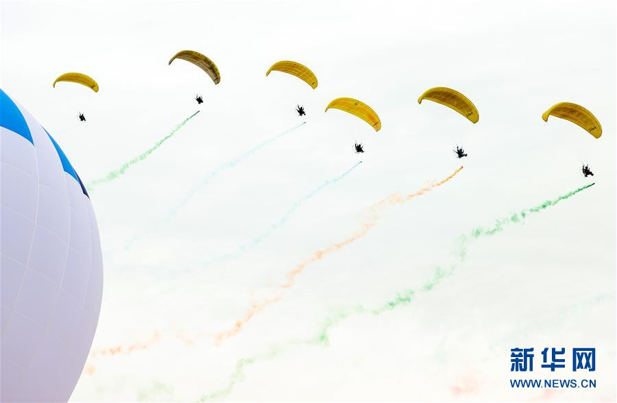 当日,宁夏吴忠市盐池县举行2020年“航空嘉年华”系列活动,开幕式活动现场有动力伞、旋翼机、动力三角翼等飞行表演,让观众领略航空运动的魅力。 新华社记者 杨植森 摄