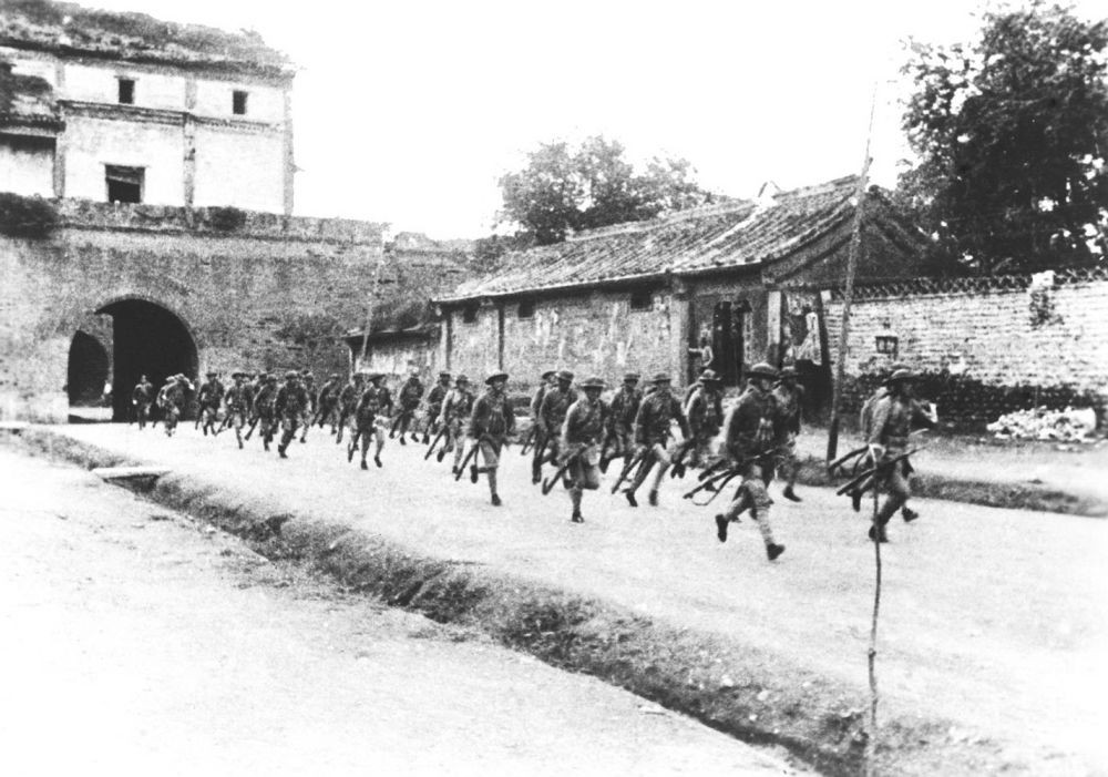 驻守北平宛平城的中国军队奔赴卢沟桥抵抗日军(资料照片)。新华社发