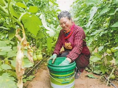 看着温棚里番茄喜获丰收,泾灵北村村民王宏基高兴地说:“十几万元的温棚我只掏了5万元,其余都靠政策补助,一年的收入就能回本。”王宏基于2018年搭建了1栋温棚种植番茄,目前年收入达到5万元左右。