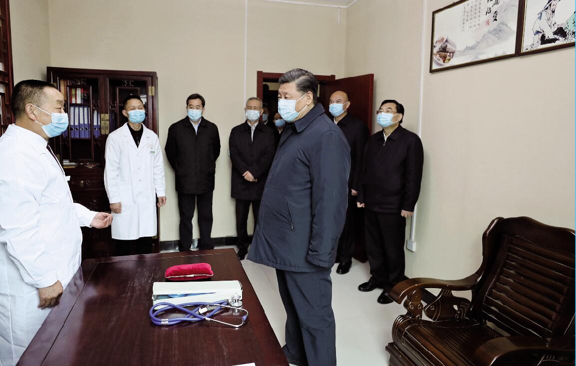 2020年4月20日至23日,中共中央总书记、国家主席、中央军委主席习近平在陕西考察。这是4月21日,习近平在安康市平利县老县镇卫生院,了解基层卫生防疫、医疗保障工作。 新华社记者 鞠鹏/摄
