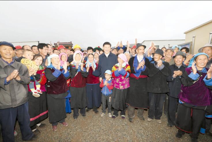 2016年8月22日至24日,中共中央总书记、国家主席、中央军委主席习近平在青海调研考察。这是8月23日上午,习近平在海东市互助土族自治县五十镇班彦村考察时同村民合影。(新华社记者 庞兴雷 摄)