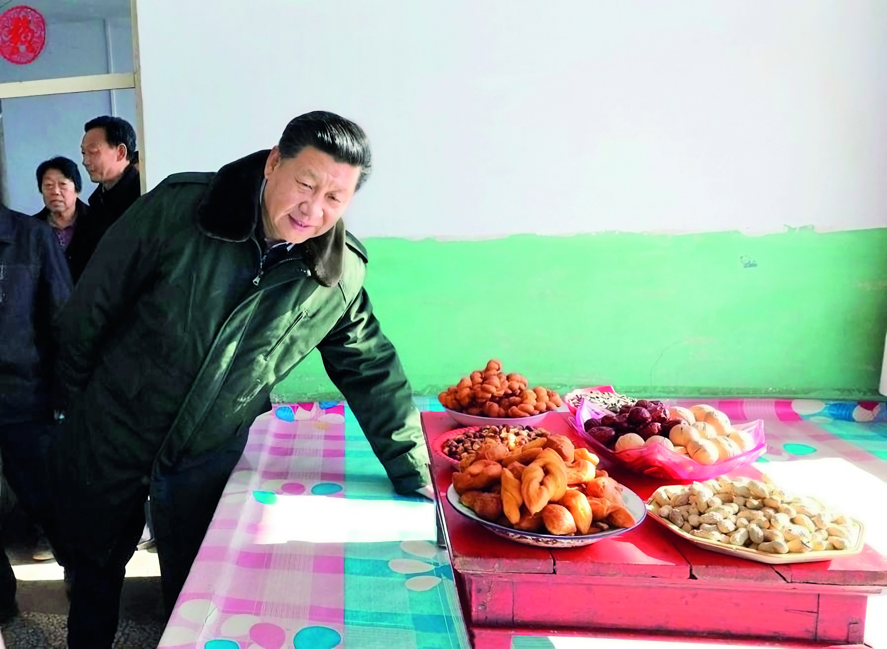 2012年12月30日,习近平在骆驼湾村看望唐荣斌老人一家。新华社记者 兰红光/摄