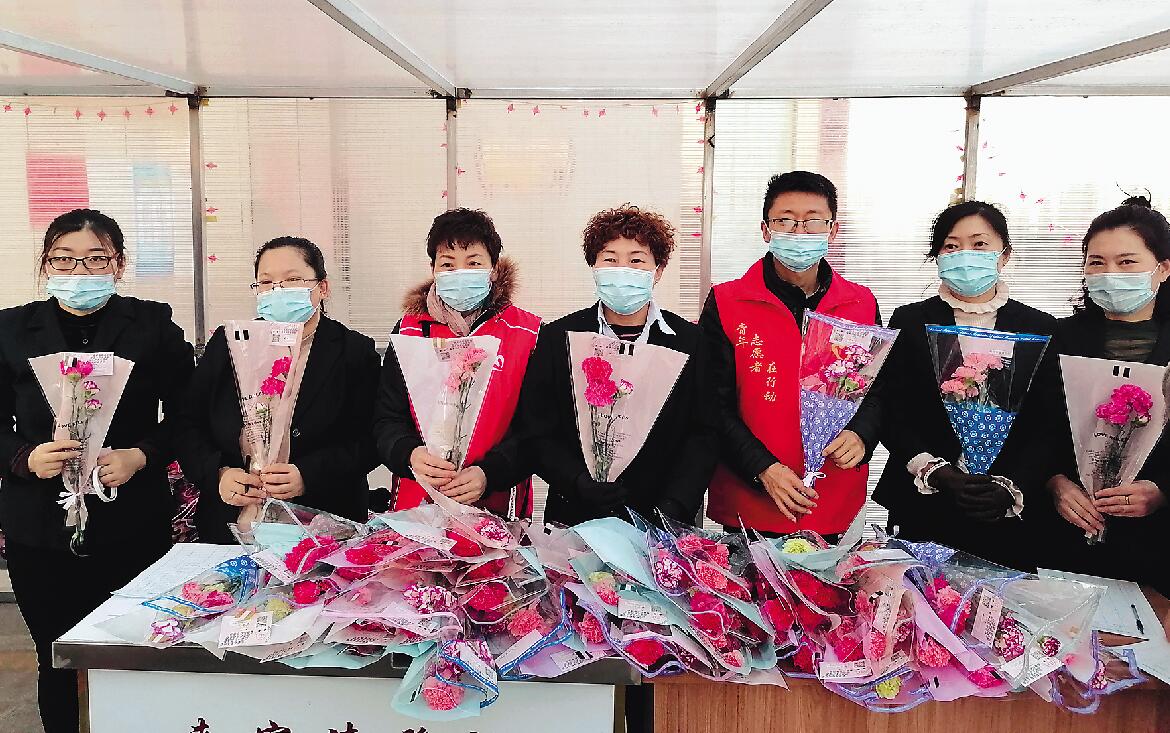 长城花园社区联合辖区各物业公司为居民免费送鲜花,传递新年美好祝愿。