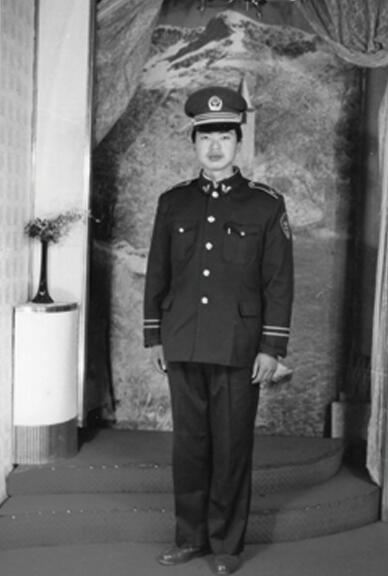孙虎生前刚穿警服时的照片