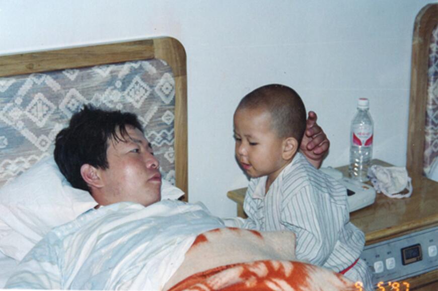 李富林出警受伤住院天真可爱的儿子在病房陪伴