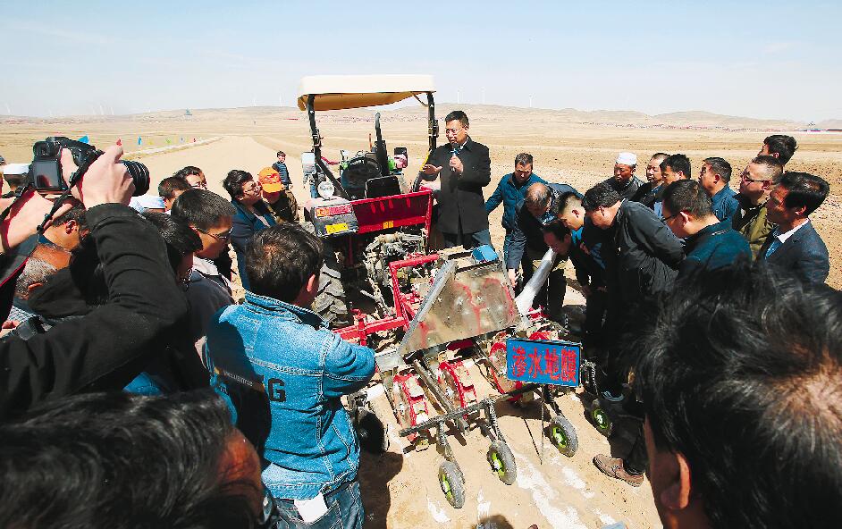 科技人员在推广小杂粮渗水地膜精准穴播技术