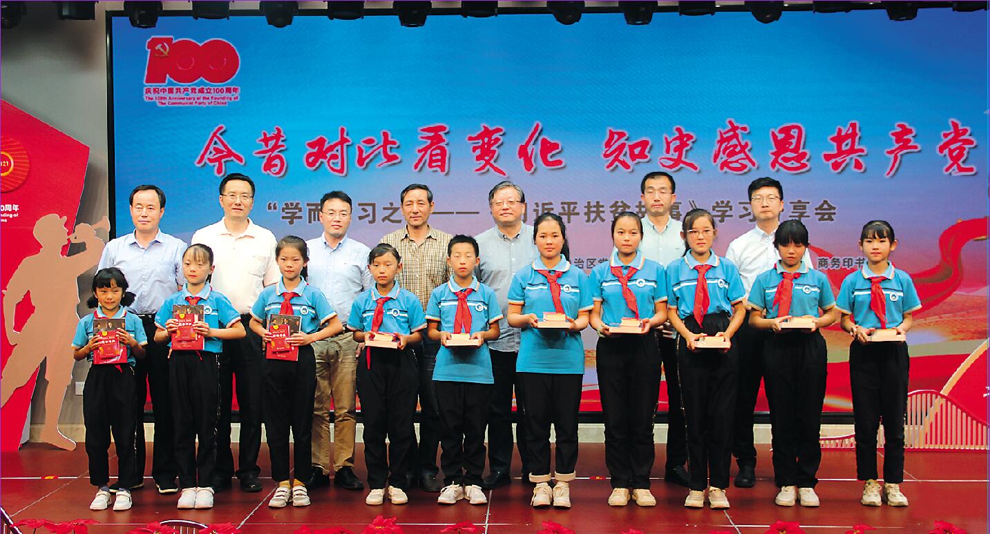 自治区党委宣传部、商务印书馆向永宁县闽宁镇玉海小学师生捐赠《习近平扶贫故事》和《新华字典》