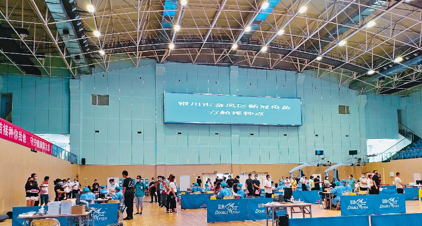 为市民开展严格有序的新冠疫苗接种工作,图为银川市金凤区新冠疫苗方舱接种点(亲水体育馆)。