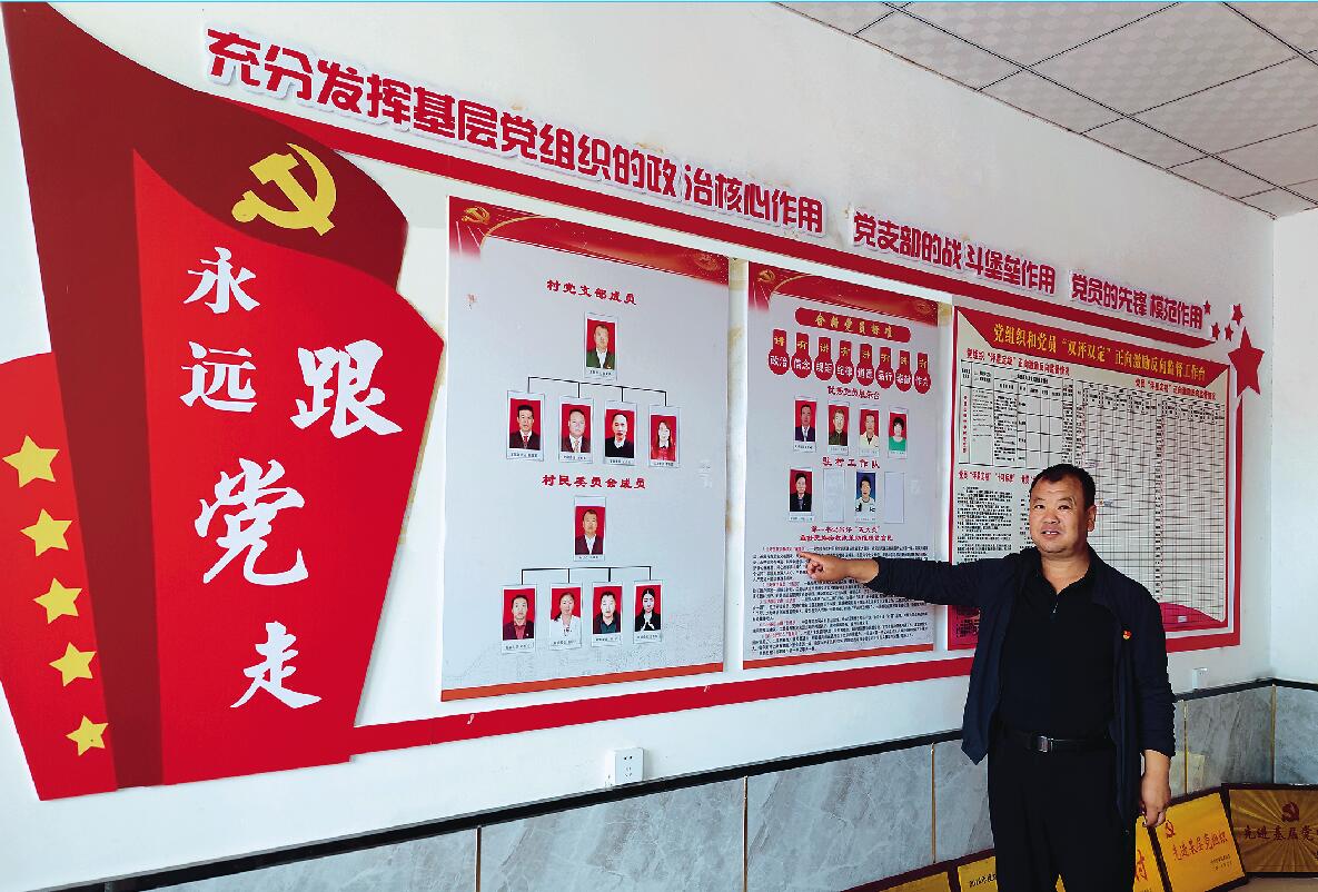伍文余给记者介绍党支部成员以及村“两委”班子成员职责分工情况