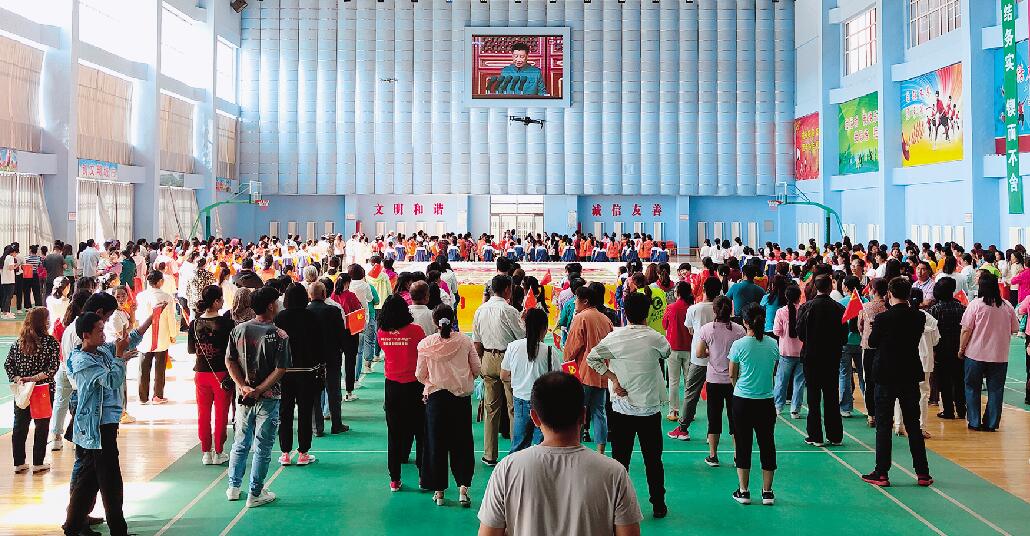 2021年7月1日,彭阳县各界群众在县体育馆内集中收看习近平总书记“七一”重要讲话。 杨卫民/摄