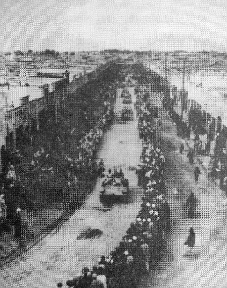 9月26日,中国人民解放军十九兵团司令员杨得志、政委李志民、副司令员兼参谋长耿飚、副政委兼政治部主任潘自力等首长随同部队进驻银川。银川各族各界群众2万余人,手持各色小旗,聚集街道两旁,敲起锣鼓,载歌载舞,欢庆塞上古城银川解放。10月7日,在隆重的入城仪式中,中国人民解放军驻银部队受到了银川人民的热烈欢迎。