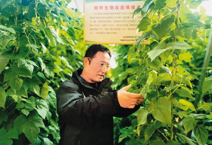 马学锋查看秸秆生物反应堆技术应用情况及豆角长势