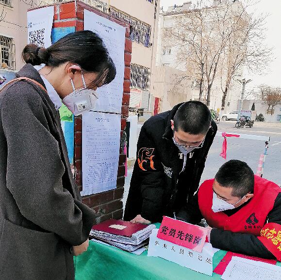 新冠肺炎疫情期间,白喜军(右一)在社区做志愿者。