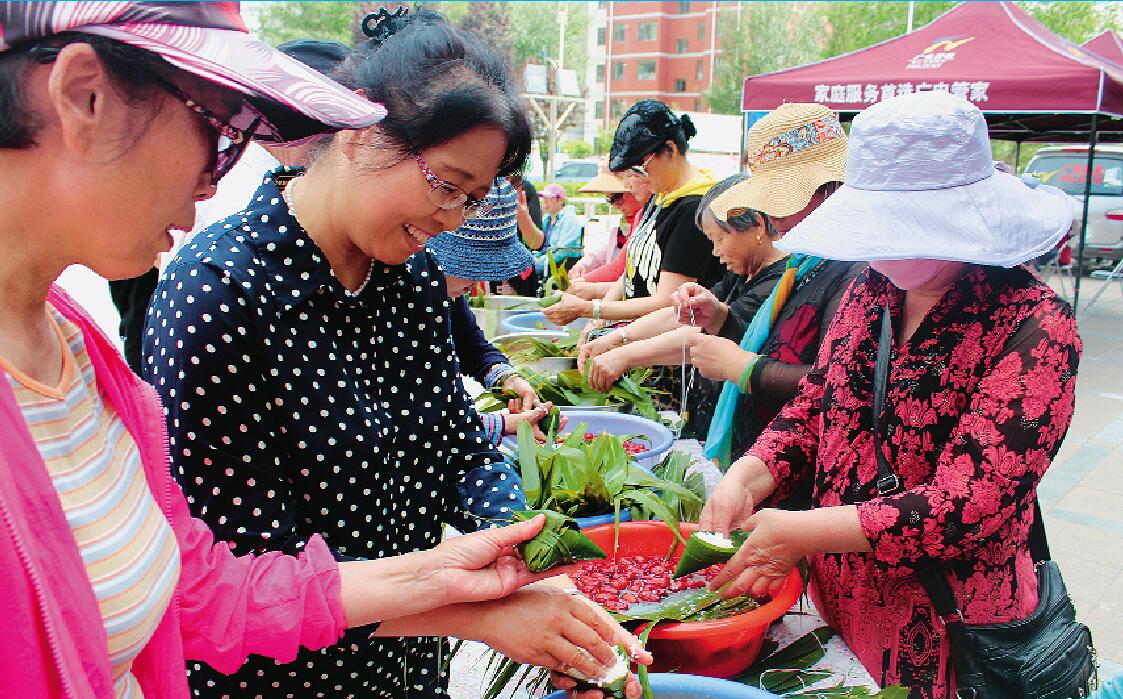 金凤区湖畔嘉苑社区组织居民包粽子,欢度端午节。