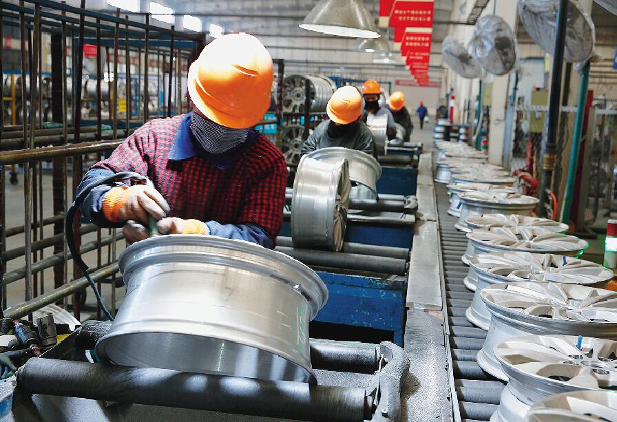 打造特色产业集聚高地,加速发展铝基新材料产业集群。图为宁夏今飞轮毂有限公司500万件汽车轮毂生产线。