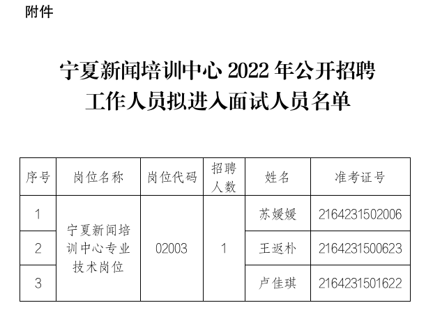 宁夏新闻培训中心2022年公开招聘工作人员拟进入面试人员名单公示