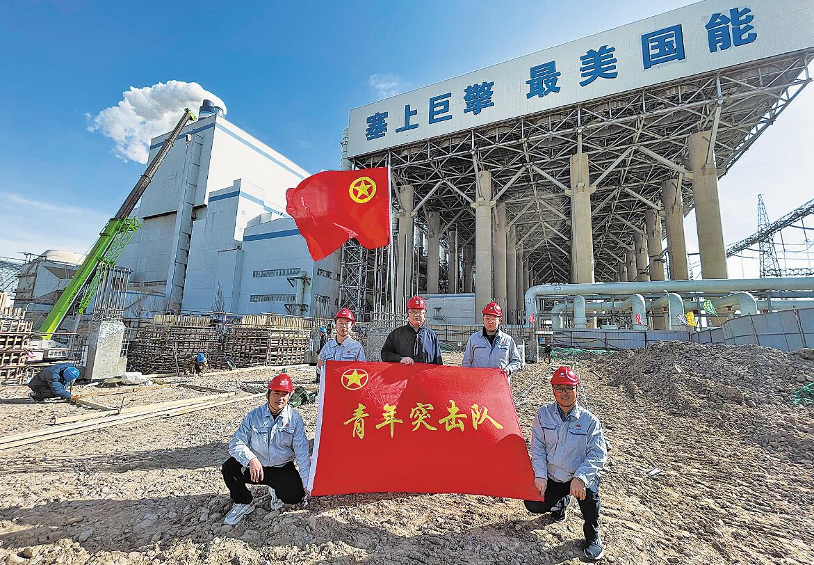 国家能源集团宁夏灵武发电公司基建青年突击队在飞轮储能项目施工现场 胡刚/摄