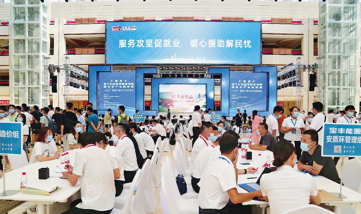 自治区人力资源和社会保障厅坚持把就业放在保障和改善民生的首要位置,促进高质量充分就业。图为举办政企联合大型招聘会。