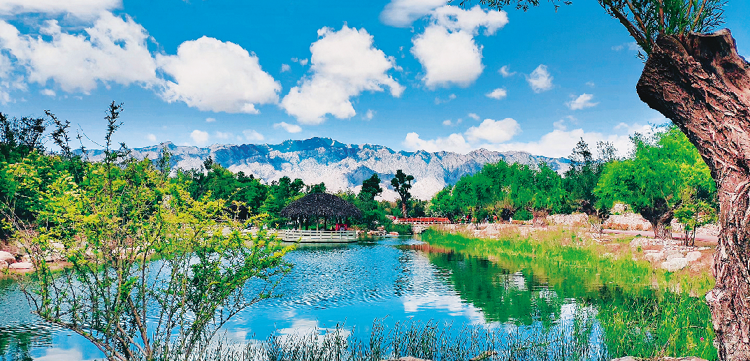 沿着银川城北的贺兰山路一直向西,到达贺兰山腹地的云山矿坑。因开采年代久远,遗留的废弃矿坑轮廓依旧可见,但周边已覆盖了树木和植被。站在高台处极目远眺,散落其间的几个蓄水池如同镜面般平静,在晴空下熠熠生辉。“一坑一美景、一地一特色”的贺兰山运动休闲体育公园、矿区葡萄酒庄、经果林采摘园等已现雏形。