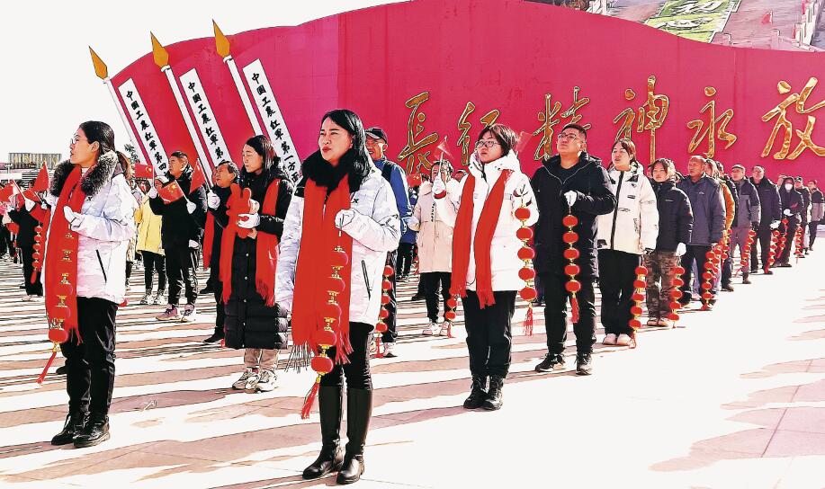 固原市隆德县组织群众开展登山活动庆祝新春佳节,在六盘山红军长征纪念广场齐唱《歌唱祖国》,表达对伟大祖国的美好祝福。