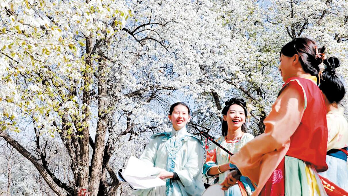 沙坡头区围绕乡村振兴和全域旅游发展,积极推动文化旅游与相关产业跨界融合,加快发展乡村旅游和休闲农业。图为沙坡头区迎水桥镇南长滩村梨花节。