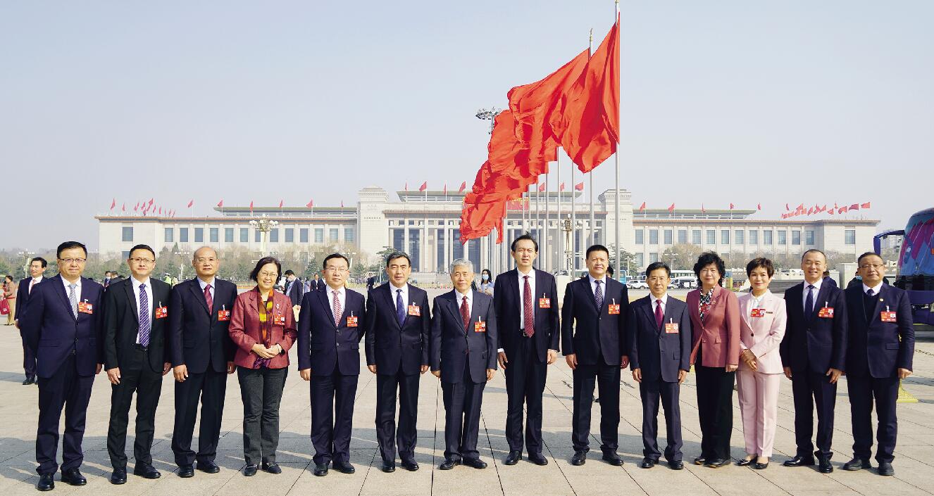 出席全国政协十四届一次会议的部分住宁全国政协委员在人民大会堂前合影 赵 军/摄