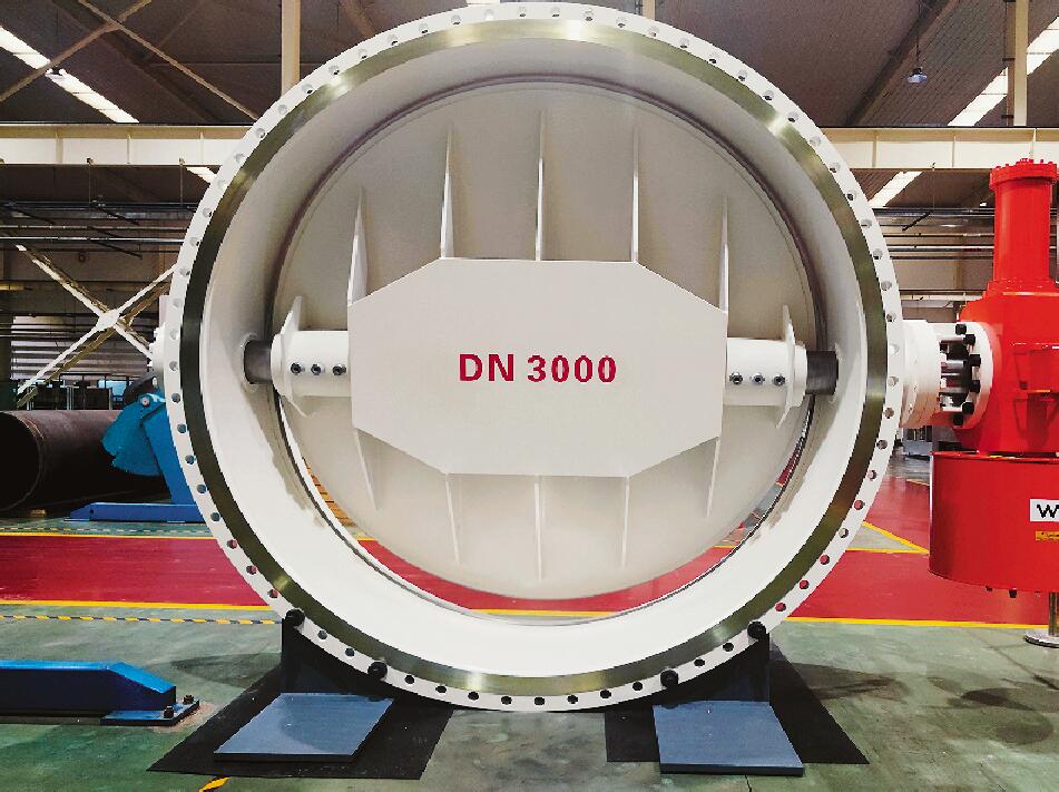 吴忠仪表研制的DN3000超大口径三偏心全金属密封蝶阀