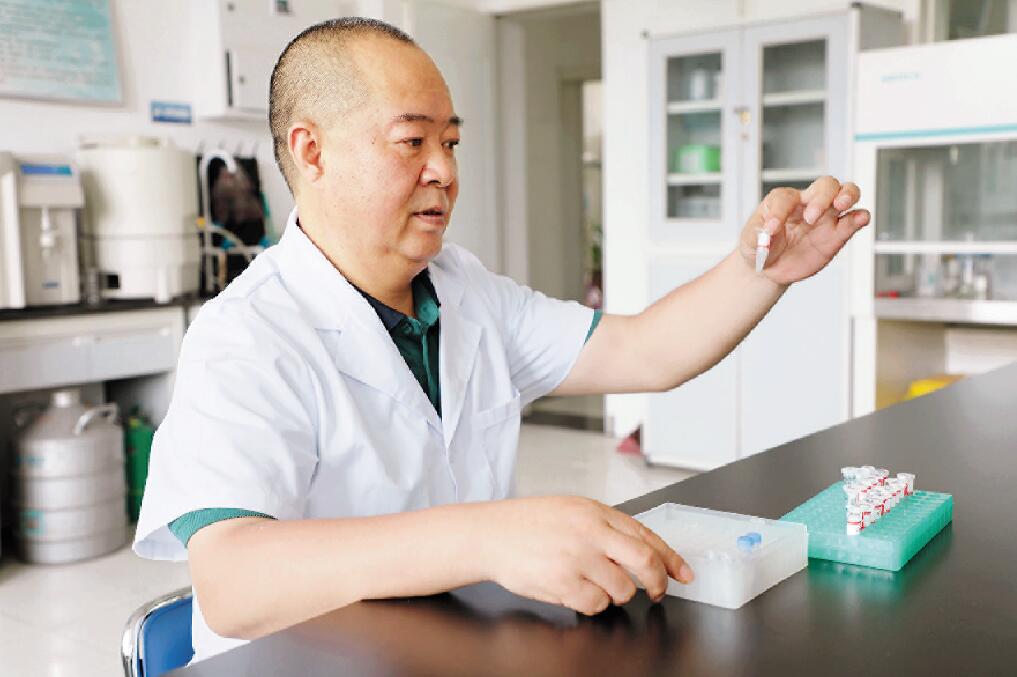 “最重要的是要在第一现场,母牛开始发情的时间得盯准,还得在排卵前的2到4小时内把性控精液准确输到有滤泡侧的子宫角。”那阵子,梁小军同时跑七八个养殖场,专门负责这件事。项目执行期3年,梁小军经系统研究确定了性控冻精最佳输精时间和部位,突破了技术瓶颈,共示范奶牛冻精1万多枚,性控冻精的平均情期受胎率高达50%以上,母犊率高达93%。也因此,他制定出了全国第一个性控冻精应用技术地方标准,被国内多个厂商列为技术教材,对高产奶牛的性控快繁发挥了助推作用。