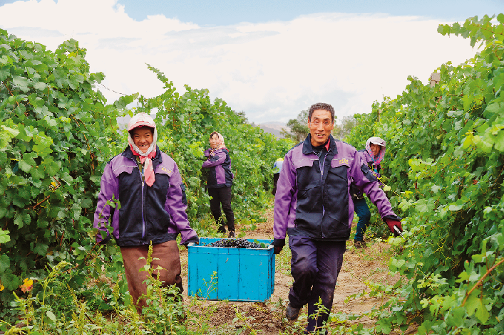 宁夏贺东庄园的酿酒葡萄喜获丰收。