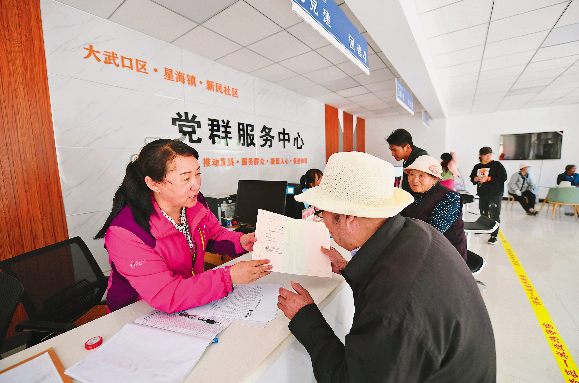石嘴山市大武口区星海镇新民社区设立的党群服务中心让居民少跑腿,有事一次办结。