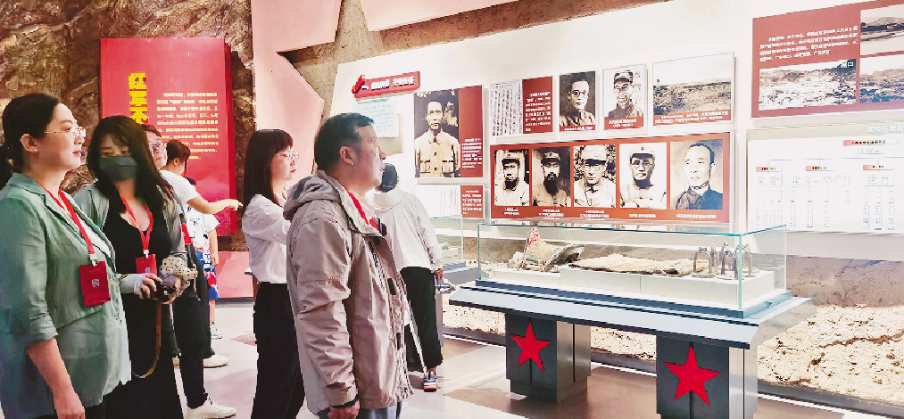 全国党刊全媒体宁夏行主题采访团的编辑、记者在六盘山红军长征纪念馆参观学习。