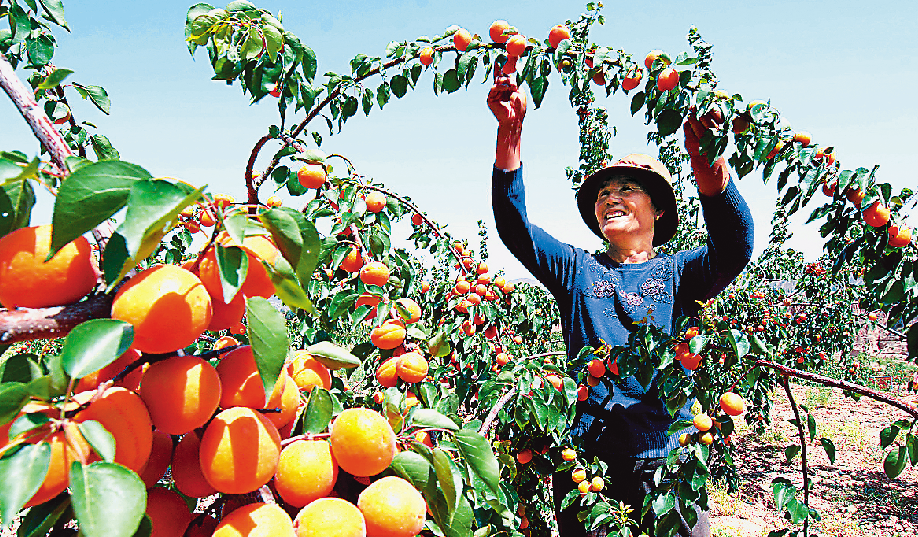 红彤彤的红梅杏熟了,村民心里乐开了花。