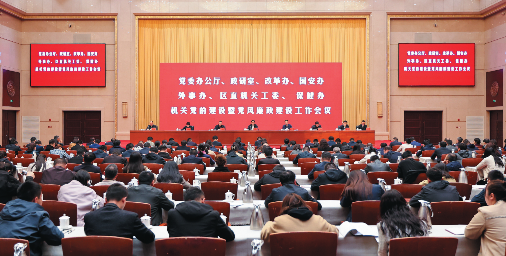 3月26日,自治区党委办公厅、政研室、改革办、国安办、外事办、区直机关工委、保健办召开机关党的建设暨党风廉政建设工作会议。 刘鹏/摄