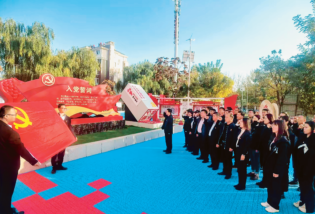 青铜峡职业教育中心党员教师重温入党誓词。 青铜峡职业教育中心供图