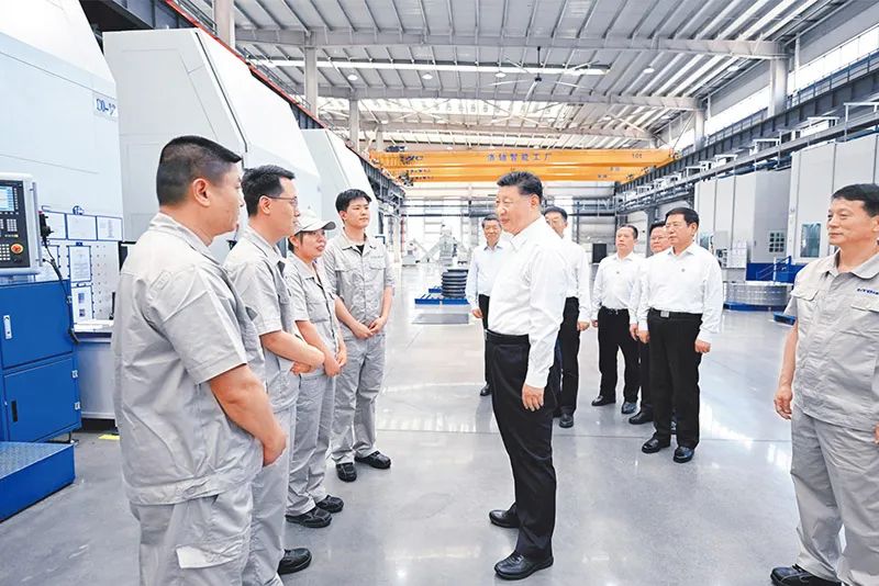 2025年5月19日至20日,中共中央总书记、国家主席、中央军委主席习近平在河南考察。这是19日下午,习近平在洛阳轴承集团股份有限公司智能工厂考察时,同企业职工亲切交流。 新华社记者 燕雁/摄
