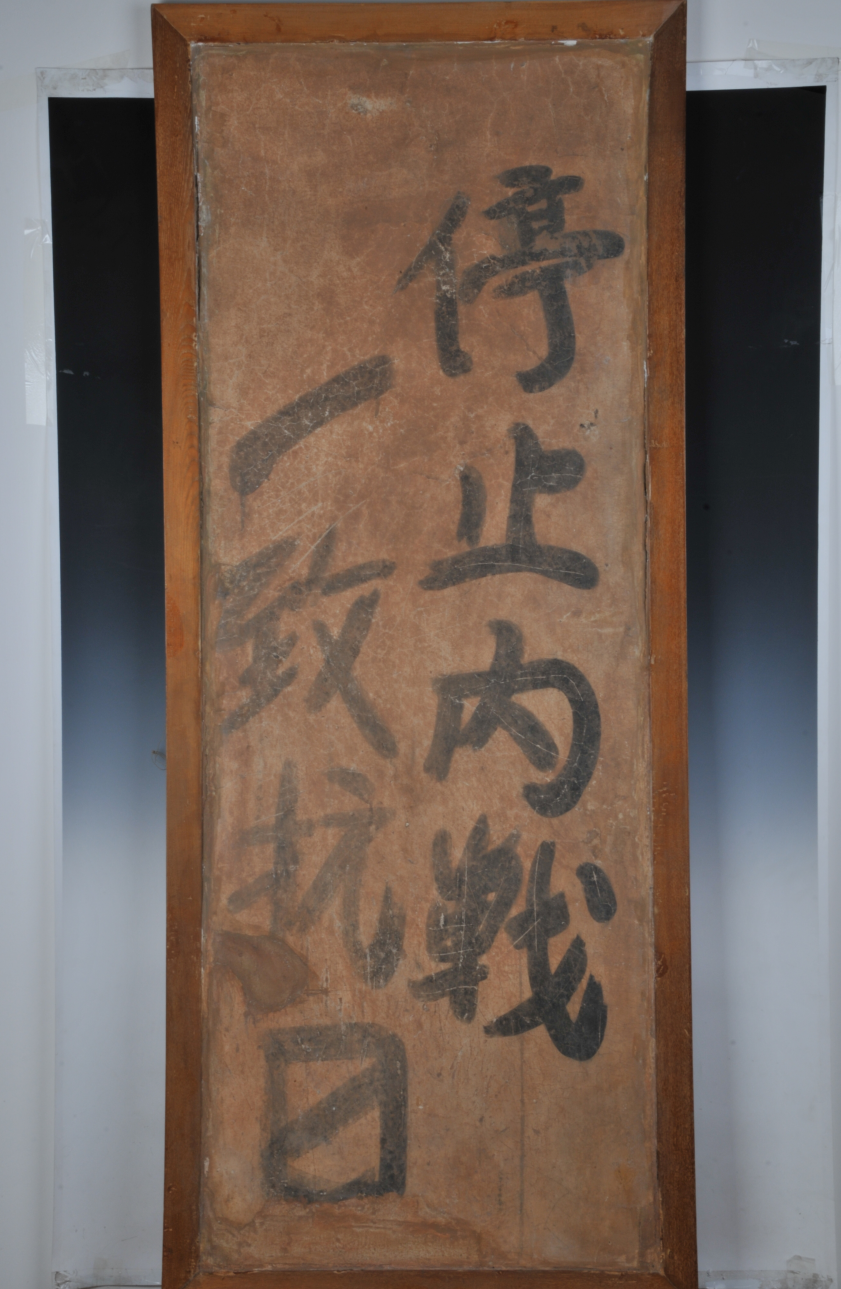 红军西征在宁夏期间,为了更好宣传党的抗日救国主张和革命政策,在墙上写的革命标语。 宁夏博物馆供图