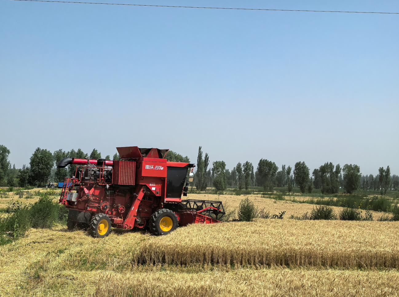 2025年,宁夏主要粮食作物喜获丰收。图为中宁县新堡镇南湾村小麦种植基地收割现场。 自治区农业农村厅供图